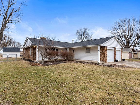 Nestled in the heart of the Royerton / Delta community school district, this charming brick ranch might just be the home you've been searching for! Recent updates include: newer roof, well, vinyl siding, and water softener. With three bedrooms, one bath, and 1,581 sqft of inviting living space on a nearly half-acre lot, this home offers the perfect blend of warmth, character, and modern convenience. Step inside to an open-concept living, dining, and kitchen area, ideal for gathering with loved ones. The living room’s natural light and cozy fireplace create a welcoming space, while the hardwood floors in the dining area and bedrooms add timeless beauty. The white kitchen cabinets, abundant counter space, pantry, and handy kitchen island with room for barstools make this kitchen as functional as it is stylish, complete with stainless steel appliances and a double-basin sink overlooking the backyard patio. Outside, you'll find a fully fenced yard and a spacious ~20x14 storage shed, offering endless possibilities for hobbies, storage, or a workshop. The attached two-car garage even hosts all utilities for added convenience and more interior storage space. Located just over a mile from Delta Schools, this home has a rural feel while still being close to everyday essentials—plus, it's in a USDA-eligible area, making homeownership even more accessible. Don't miss your chance to make this special home yours!