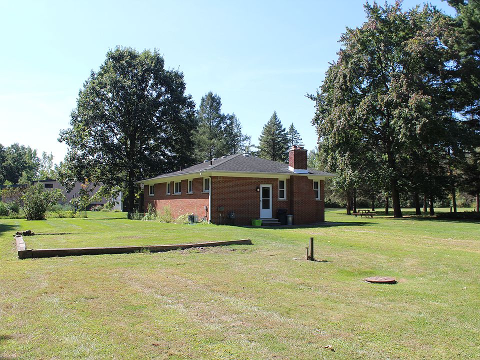The home is situated at the front of the lot with access from the paved driveway. Please note: the property is owned by a business, which operates from the rear portion of the lot. The home is leased with a designated yard area surrounding it; the remainder of the land is reserved for business use.