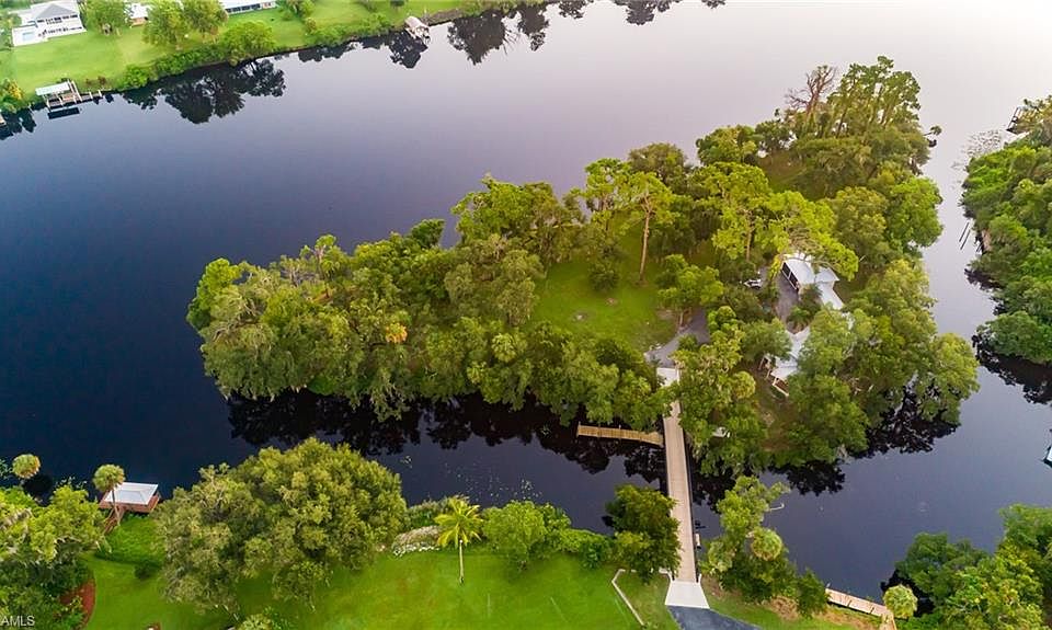 YOUR OWN PRIVATE ISLAND IN THE FORT DENAUD AREA OF SW FL! Located only 30 miles from downtown Fort Myers on the intracoastal waterway in the fresh water of LaBelle, FL, between two locks, making this a hurricane hole for boaters, or a private island retreat for those who love the "unique" and value their privacy! This tropical island has an unfinished Sanibel-style coach house--a shell for you to complete to your own needs and taste. The current floor plan consists of a great room with kitchen, Florida room, office, laundry room, 2 baths, an oversized two vehicle garage and includes a roof top sun deck. The heavy duty construction is high quality frame with open beamed ceilings and decorative cupolas. The vacant roadfront old river home site is large enough for a second home, guest house, or a RV condominium with caretaker's apartment; this lot features its' own septic system, dock, decorative fencing, and a gated entry and asphalt paved driveway. The scenic bridge is steel and wood construction and boasts two docks--one on each side of the oxbow. Enjoy unparalleled river views of both the old river's native beauty and the new river's boat traffic! FEED YOUR SOUL HERE!
