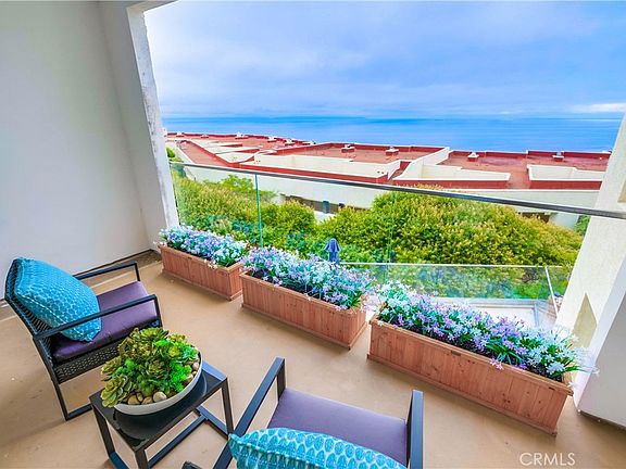 Resort living at its finest! You'll feel like you're on vacation every day while enjoying the fabulous PANORAMIC VIEWS of the ocean, Catalina Island, lush golf course, coastline, rolling hills and magnificent sunsets from this highly upgraded & modern 2-bedroom, 2-bath condominium located in "Ocean Terrace." Spacious enclosed deck offers the perfect setting for that evening glass of wine or morning cup of coffee watching the pelicans glide through the cool ocean air and sailboats heading to open seas. Spacious living room has a modern fireplace, smooth ceilings, indirect lighting and fabulous modern grey-hued wood-look flooring throughout. The high-gloss white kitchen has custom decorator tile subway backsplash and beautiful quartz countertops, high-end stainless appliances and offers plenty of storage. The primary suite has a spacious walk-in closet and remodeled full bath with oversized shower and bidet. The adjacent guest bedroom has a full bath, and the washer and dryer are located in the hallway adjacent to the bedrooms. Ocean Terrace is located in the highly desirable Palos Verdes South neighborhood on a cul-de-sac overlooking a breathtaking National Golf Course & hiking trails that span thru PV coastline, private beaches & magical coves & the 5-star Terranea Resort. Ocean Terrace amenities include a spacious swimming pool, jacuzzi, two tennis courts, pickleball/paddle tennis court, shuffleboard, fitness center, sauna, billiard room, recreation room with a large screen TV, kitchen and restrooms.... everything you'll need to enjoy resort-style living including beautiful hiking trails along the ocean bluff. Enjoy the beautiful sunsets from your piece of paradise along the coastline of Palos Verdes!