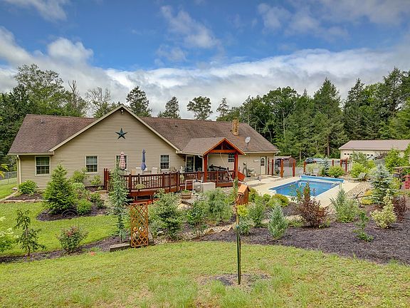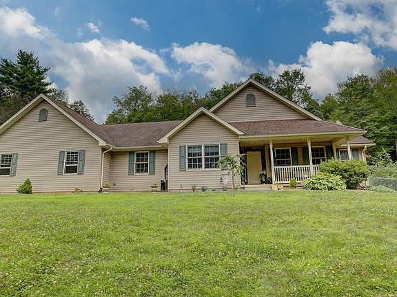 Love Outdoor Space? You'll adore the Privacy, and wildlife from the beautiful deck & timberframe porch.Gorgeous Ranch Home on 6.15 Acres near Rose Valley Lake.Enjoy the summer days from the awesome new inground pool.New Landscaping & beautiful gardens, fruit orchard,stone pathways,Hunting shelter, Fire pit.This open concept home offers 4 BR, 2 Bath, with Mountainstone Fireplace. Hardwood floors in the Kitchen, Dining and Laundry, with Granite countertops in the Kitchen. The Large Primary Bedroom wing features a large ensuite bath with whirlpool tub & walk-in closet. 4th Bedroom is in the Primary Wing, could be an office, Nursery, etc. 2 car attached Garage and 2 car detached garage with Heated Newly Remodeled office,or bonus room.Partially finished basement, Wood Stove in Basement.New propane furnace 2021 & Central Air 2020.