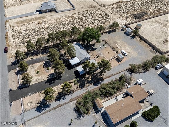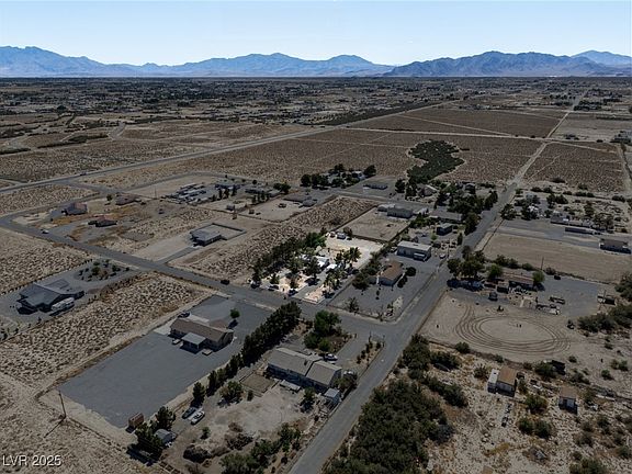 Fantastic opportunity to live on 1 acre , zoned RE-1 with the most gorgeous view of Mount Charleston. 3200 Florenza is a manufactured home, converted to real property and boasts 2 bedroom PLUS an extra den for a potential 3rd bedroom or hobby room. Has owner suite with dual sinks, tub, shower separate. Open living room with formal dining area in LR and dining space within kitchen. Large deck (16x14) in the front, fully shaded with permanent overhang for your morning coffee and mountain views. Back has fully fenced area, plenty of additional parking, shade, and extra sheds for storage. The 2 stall detached garage has currently been converted to a general hang out space. Large carport could hold up to four spaces.