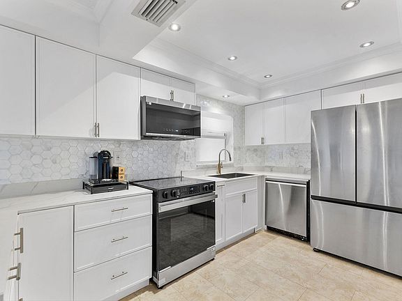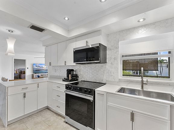 Gorgeous corner unit professionally renovated with brand new kitchen with quartz countertops and stainless steel appliances. Large open plan living and dining area great for entertaining. It is located across the street from intracoastal and short walk to the beach. Enjoy some intracoastal views from your private balcony, overlooking the pool area. This unit has 2 master bedrooms with en suite bathrooms(contemporary bath fixtures) and walk-in closets. The building boasts new roof, new landscaping and outdoor lighting.