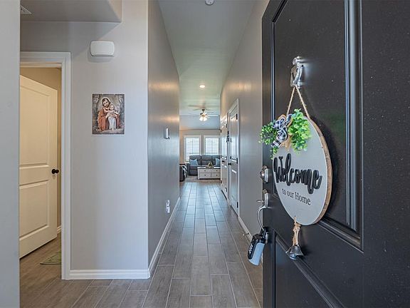 It’s Love at First Sight! A Stylish, Move-In Ready Home w/ Modern Comforts. Why build when you can own a beautifully upgraded home that’s already filled w/ the features you love? Gently lived in, meticulously maintained, this stunning residence blends timeless design w/ everyday functionality, offering a perfect balance of charm/convenience. Step inside, you’ll notice the bright, open layout, natural light pouring in through custom plantation shutters. The living and dining areas flow effortlessly into a beautifully designed kitchen, complete w/ quartz countertops, a five-burner gas stove, stainless steel appliances, open floating shelving, matte black hardware, a generous pantry, an adorable custom coffee bar, ideal for your morning routine or casual entertaining. The ceramic wood-look tile flooring adds a touch of elegance while offering easy care throughout the main living spaces. The spacious primary suite offers a large walk-in closet, ceiling fan, a luxurious bathroom w/ dual vanities, divider cabinetry, s shiplap accent wall that adds a warm, designer touch. Every corner of this home reflects thoughtful upgrades, from the built-in mud bench w/ dedicated cubbies for shoes/sweaters to the double-door laundry area and ample storage throughout. The hall bath has been enhanced w/ a durable steel porcelain tub, full-height tile for a polished, upscale finish. The 2-car garage offers an in-ground storm shelter, ideal for peace of mind during storm season or for protecting wintering plants. A covered patio invites year-round outdoor living, while a full-length concrete sidewalk wraps along the side and rear of the home, adding convenience and function to the spacious backyard. All upgrades were completed by trusted Taber-approved trades, ensuring the highest quality craftsmanship. This home is located with quick access to I-40, Kirkpatrick Turnpike, Will Rogers Airport, the FAA, Mike Monroney Aeronautical Center, and the Hobby Lobby corporate offices.
