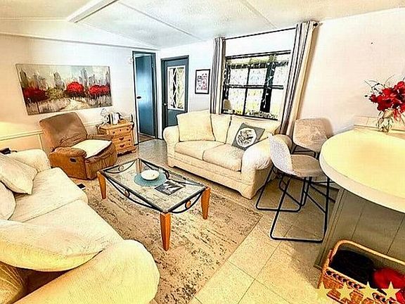 This home offers everything, just bring your suitcase it is move-in ready. There is a large storage shed, extra large carport, a spacious Florida room for year-round use, a screened patio plus a covered patio perfect for relaxing. It has an updated kitchen with modern finishes and appliances. AC is in great condition. This is in a prime location it is close to racing, bike events, beach, shopping, and numerous eateries just to name a few. This is definitely a great home to check out.