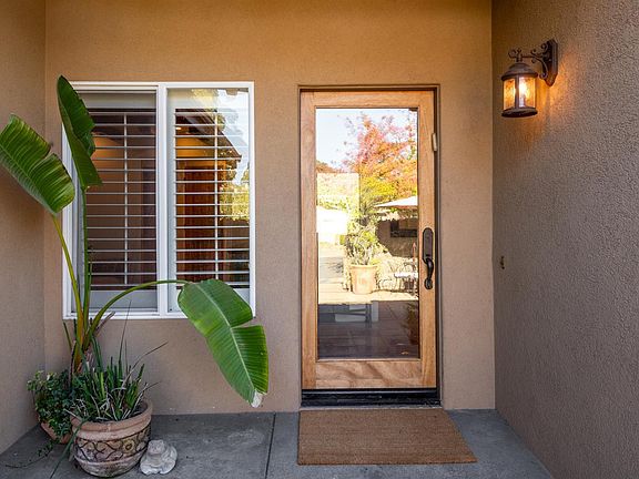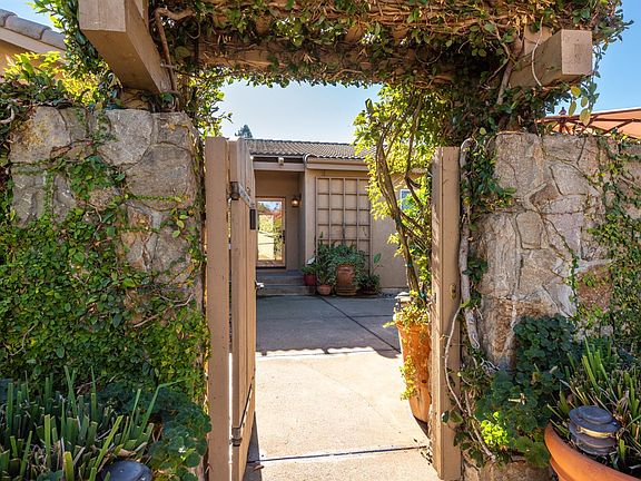 Light, bright, and designed for effortless entertaining, this single-level home offers the perfect blend of style and comfort. The open floor plan centers around a chef's kitchen featuring a Thermador professional 6-burner range with double ovens, commercial-size Monogram refrigerator and freezer, Bosch dishwasher, and a large island with prep sink. Custom cabinetry, plantation shutters throughout, and an oversized kitchen window with views of the backyard add to the home's inviting warmth. Enjoy seamless indoor-outdoor living with a backyard complete with an in-ground swimming pool, built-in BBQ, pizza oven, and children's playhouse. The tranquil front courtyard with water feature sets a welcoming tone, while the rock wall adds extra privacy. Spanish tile flooring flows throughout the home, complemented by an immaculate epoxy-finished garage and an abundance of mature fruit trees. A true Napa Valley retreat move-in ready and designed for everyday luxury.