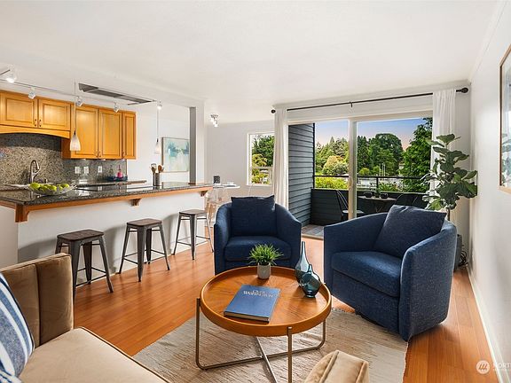Come watch the boats coming through the Hiram M. Chittenden (Ballard) Locks from your balcony and enjoy the wildlife right out your window! This is a truly amazing space, all tucked away in a quiet, serene location. Walk to trails, Commodore Park and over the footbridge to downtown Ballard. New paint, updated kitchen and French doors to the primary are just a few of the charming details this adorable 1 bedroom condo has to offer. Enjoy the outdoor pool, indoor sauna & game room. A huge storage closet, community bike room, and off street reserved parking spot are all yours too. Not rental cap! Pets under 35Lbs are welcome. Whoof Whooof! Welcome home!