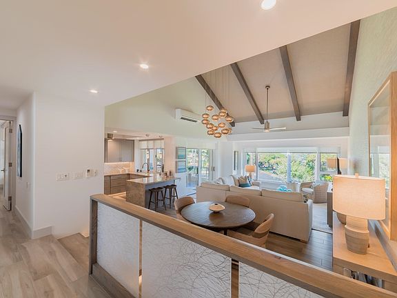 This beautifully transformed two-bedroom, two-bath villa at the Palms at Wailea is a standout property that blends island elegance with exceptional quality. From the moment you step inside, the meticulous attention to detail and craftsmanship are immediately clear—every finish thoughtfully selected to create a refined, yet inviting retreat. The soaring vaulted ceilings, finished with a subtle textured design, create an immediate feeling of spaciousness and lightness. Oversized windows flood the interior with natural light, highlighting the clean architectural lines and carefully chosen materials throughout. The kitchen is equipped with solid surface granite countertops, KitchenAid appliances, and durable ceramic tile plank flooring throughout. Thoughtful details like custom resin panel doors with embedded organic elements, textured linen accent walls, and smooth level five paint finishes add both sophistication and warmth. As evening falls, underlit lighting artfully placed throughout the villa casts a soft, inviting glow, enhancing the serene, resort-inspired ambiance. The bathrooms have been fully transformed to offer a spa-like retreat, showcasing elegant finishes and a tranquil design that elevates everyday living. The spacious lanai opens seamlessly to beautifully landscaped grounds, framed by oversized tropical trees and lush greenery. It’s an ideal space for entertaining or simply unwinding while enjoying the gorgeous ocean views and tranquil ambiance that surround you. Ideally positioned within one of Wailea’s most sought-after communities, this unit enjoys expansive views of lush tropical greenery and a beautiful glimpse of the ocean—a tranquil setting that feels like a true getaway. The Palms at Wailea offers a resort-style experience, with amenities that include an oversized pool and spa, a peaceful pavilion with concierge services, and shaded lounge areas perfect for gathering or relaxing. Just a short stroll from Wailea’s world-class Wailea/South side beaches, golf, and the Shops at Wailea, this villa is ideally suited for full-time living, a second home, or an upscale vacation rental. Thoughtfully transformed and masterfully styled, this is Maui living at its most refined.