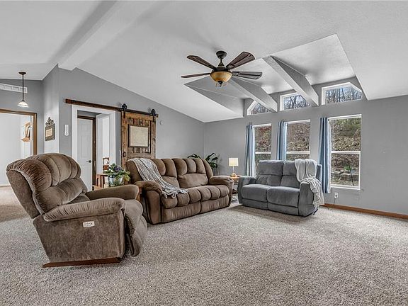 If you’re dreaming of wide-open spaces and country living, this 3-bedroom, 2-bath ranch in Grain Valley offers 12.44 acres of tree-lined land with a pond, creek, and open fields perfect for a homestead or hobby farm. Vaulted ceilings and large windows fill the home with natural light, while the oversized primary suite features a walkaround closet, ensuite bath, and laundry. Recent updates include new carpet, flooring, and a 5-year-old roof. The spacious eat-in kitchen, mudroom, and multiple decks and patios provide comfort and convenience. A large shop with electricity, concrete floors, covered patio, and two oversized rolling doors is ideal for projects or storage, and a historic red barn salvaged from Unity Village adds rustic charm. The 2002 sq ft walk-out basement with natural light and sliding glass door is currently a workshop but could be finished for additional living space. A brand-new chain-link fence offers a safe area for pets or livestock, and the open acreage is ready for hay, bees, or more. Exterior and driveway were professionally power washed after photos.