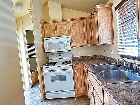 Escape to your perfect summer retreat in this charming one-bedroom, one-bath Cavco Home, located in the beautiful Lake Park RV Resort. Spanning 400 square feet, this cozy home features cathedral ceilings, ceiling fans, and tons of windows that give it an inviting atmosphere. Enjoy cooking in a well-equipped kitchen with a gas range, microwave, and beautiful countertops. Relax in bedroom with a sliding mirrored wardrobe and built-in cabinets perfect for a tiny home. Step outside to a lovely custom patio deck, ideal for soaking up the sun or stargazing, all while surrounded by the stunning backdrop of Southern California’s Ortega Mountains and Beautiful Lake Elsinore. Dive into the summer lifestyle with amenities like an Olympic pool, game room, pet friendly large clubhouse and horseshoe pits, lakefront picnic sites with barbecues, and a six-lane boat launch just next door. This getaway is your dream haven where summer relaxation and adventure come together! Enjoy 3 parking spaces, New Washer and Dryer, New Water Heater, New Refrigerator, New Carpet