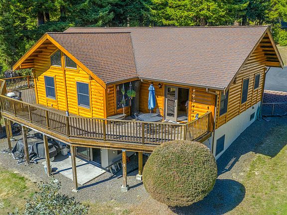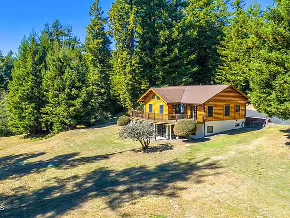 Situated along the serene stretch of Little Valley Road, just a scenic ten-minute coastal drive from the heart of downtown Fort Bragg, lies a private redwood haven like no other. Nearly eight acres of serene forest surround this meticulously cared-for residence. A place where quiet nature and coastal beauty meet in perfect balance and the pride of home ownership shines through every detail. The property unfolds like a story. Hand-selected redwoods have been thoughtfully thinned to reveal sweeping views through the forest canopy, while the sky above comes alive at sunset with soft pinks and purples painting the open horizon. The front and backyards have been artfully manicured, offering a sense of order amid the wild beauty of the woods. Inside, 2,952 square feet of inviting living space offers a seamless blend of rustic charm and modern comfort. The open floor plan connects a large, light-filled great room with the newly renovated kitchen and island. An entertainer's dream and a chef's delight. Crisp coastal hues meet warm natural wood, and the custom end-grain fir block flooring adds a unique touch of craftsmanship to this log cabin-style home. With three bedrooms and three full baths, the layout includes two guest rooms joined by a 'Jack and Jill' bath, plus a large office currently serving as a fourth bedroom. High open-beam ceilings enhance the sense of space, while two additional oversized walk-in closets provide generous storage for culinary tools, crafts, and collections. Perfectly suited for multigenerational living, the main level offers wide hallways, ground-floor amenities, and a guest suite with direct bath access. The downstairs level features a secondary living room with a cozy wet bar, two guest bedrooms, and a full bathroom--ideal for visitors or extended family. Practical comforts abound, including a whole-property generator, water storage tank, laundry room with utility sink, and a two-car garage with workshop space. The newly paved drive-through entrance makes arrival effortless, while evenings can be spent gathered around the large circular fire pit, gazing up at the stars through the towering redwoods. This Little Valley retreat is fitting for a lifestyle of peace, privacy, and connection to the land, just minutes from the coast.