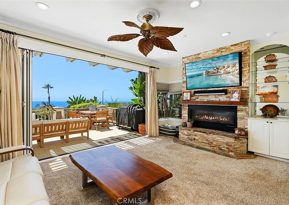 Experience true California beach living in this stunning 3-bedroom, 3.5-bathroom ocean view home in Laguna Beach, situated directly across from the famous Thousand Steps Beach. This home features a spacious open floor plan that perfectly captures the essence of indoor/outdoor living. The modern kitchen, equipped with the latest amenities, flows seamlessly into the family room, where new bi-folding doors lead to an oversized deck with breathtaking views of Catalina Island. This outdoor space is ideal for al fresco dining and lounging, allowing you to fully embrace the coastal lifestyle. The main level also includes a beautiful formal dining room, a convenient powder room, and a storage closet, all designed with both style and functionality in mind. Upstairs, the primary retreat offers panoramic ocean views from every angle. The large private deck, accessible through newly installed bi-folding doors, provides the perfect spot to soak in the views. The retreat also features a walk-in closet and a luxurious bathroom with a large soaking tub and custom stone countertops. On the lower level, you’ll find two additional en-suite guest rooms, offering privacy and comfort for family and visitors. This level also includes a laundry room and direct access to a private rear yard. The outdoor space features a patio, hot tub, and a lush lawn and garden, creating a serene retreat for relaxation. The property, which stretches from street to street, provides ample parking with an attached two-car garage and a driveway that can accommodate two additional cars, all conveniently accessed off of Virginia Way, not PCH. This home’s prime location puts the best of Laguna Beach at your doorstep, with beach access, hiking and biking trails, an open-air trolley stop, and a variety of restaurants just steps away. This property offers the perfect blend of modern luxury and coastal charm, making it the ideal place to experience the Laguna Beach lifestyle.