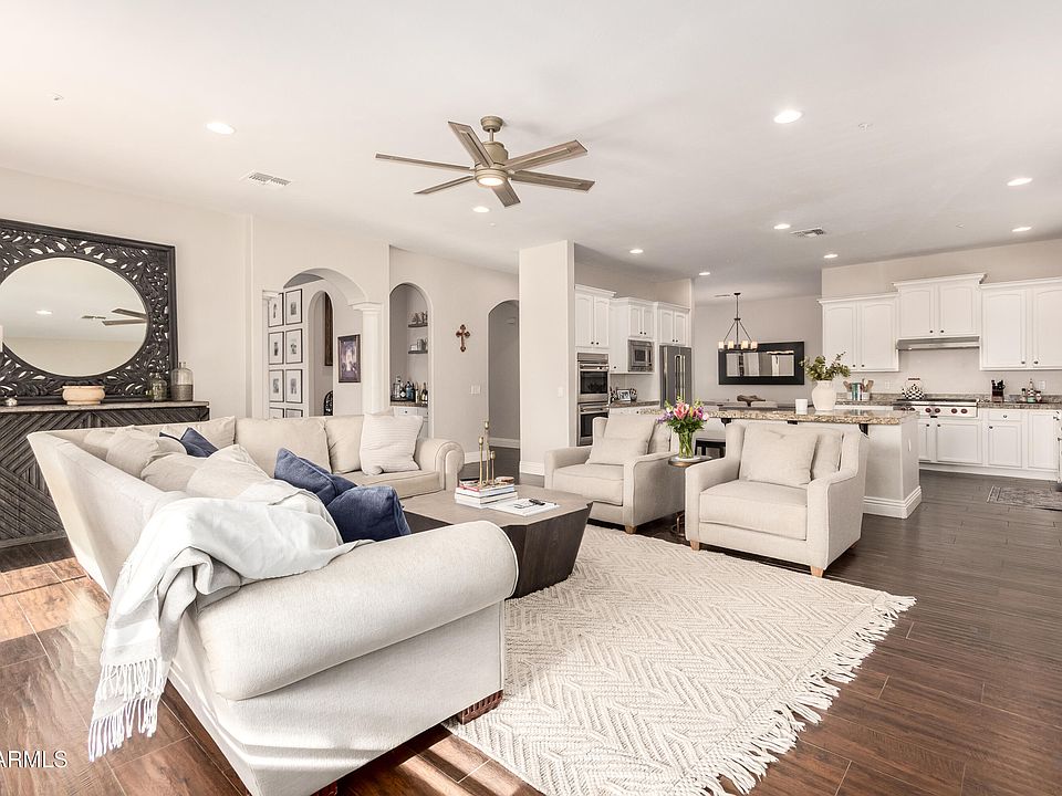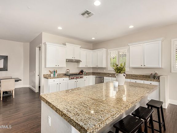 Spacious 5 bed/3.5 bath home, plus office and an upstairs den is 4,640 sqft and designed to use every inch! Chef's kitchen w/gas Wolf cooktop, double ovens, island, table nook, and walk-in pantry. Opens to a light and bright family room, formal dining room w/ gorgeous chandelier, pocket bar, cozy music/living room with gas FP, dedicated office, and half bath. Upstairs to split primary suite w/sitting area, luxury bath, designer closet and private balcony. Four spacious guest bedrooms and two additional full baths are centered around a den/teen space/playroom! Multiple sliders to the private manicured backyard with sparkling pool, deep patio, and combo grass/turf areas. 3 car garage with EV charger! Three new HVAC units! Hardwood and tile floors t/out. So many Sonoran Foothills amenities!