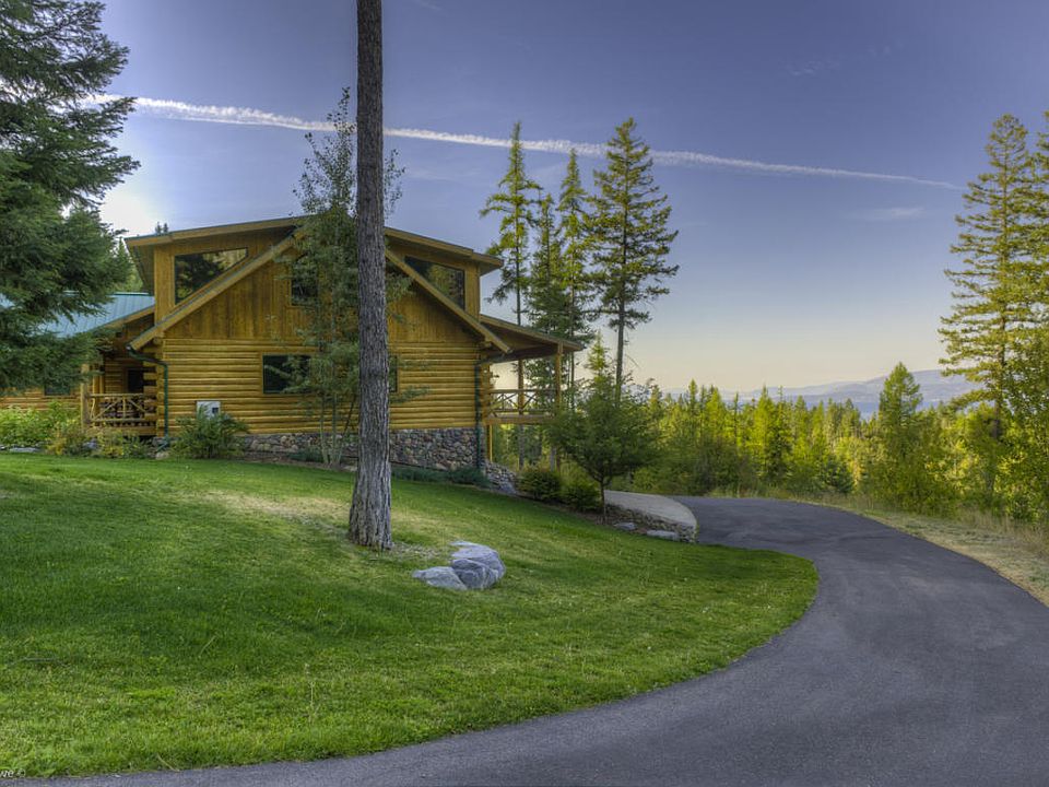 Outstanding 5200 sq ft log home on 23 acres with views of Flathead Lake, tranquil creek & waterfall, adjacent to Forest Service, gated subdivision and asphalt to your front steps. Lovely home boasts vaulted ceilings, spacious master suite + guest suite and 2 add'l bdrms. Great room concept, wonderful family/game room, 2 rock fireplaces, and double garage + 2-stall RV/toy garage. Amazing property!