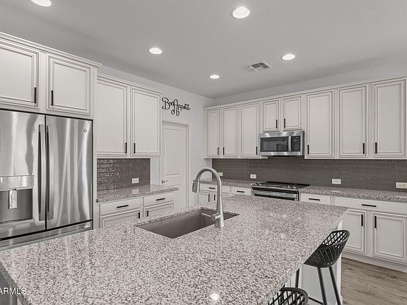 Covered patioOpen floor planFully fenced backyardCustom built-in entertainment centerLow-maintenance desert landscapingPrimary suiteEn-suite bathroom