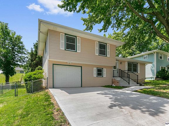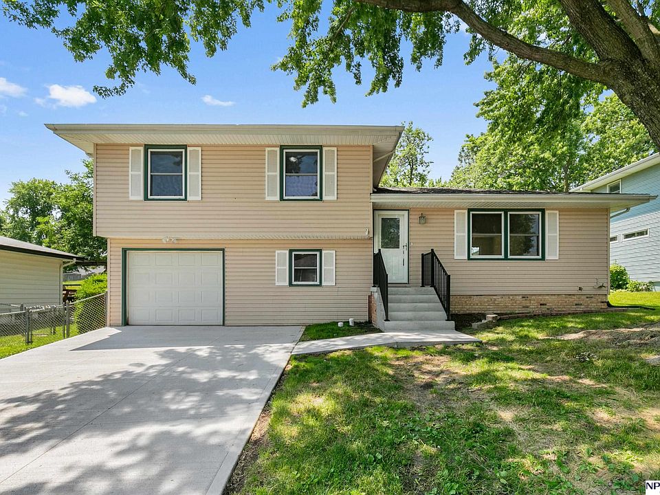 This move-in ready home has had numerous recent repairs & updates this past spring & shows beautifully! New items include: Composite deck, driveway, front porch stoop, railing, steps and sidewalk. Interior has new carpeting & vinyl flooring, freshly painted, counter tops, subway tile in bath/shower, bath & kitchen faucets, kitchen sink, range, dishwasher. Added attic insulation. Water proofing in the unfinished basement, plumbing & electrical repairs too. New roof in 2023 along with new gas furnace & A/C. Note: the lower level family room dimension are 11-4x9-10 + 12x11-1. The home was pre-inspected and is a pleasure to show! Close to Offutt AFB, shopping, theater & other amenities. All measurements are approximate.