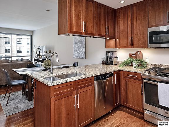 Discover stylish urban living in this 1 bed, 1 bath condo at Midtown Crossing! Featuring hardwood floors, granite countertops, stainless steel appliances, and in-unit laundry, this condo unit blends comfort with modern design. The secure Midtown Crossing condo buildings offers top-tier amenities including concierge service, a clubhouse, and a rooftop deck with stunning views of Turner Park and downtown Omaha. One underground parking space and added storage rack included. Walking distance to the gym, great restaurants, and tons of entertainment! Experience convenience, community, and city living at its best.