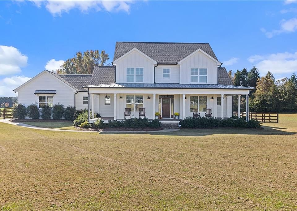 Welcome Home!! The impressive living space is truly exceptional, the open floor plan features a farmhouse interior and boasts an expansive living area with high ceilings, a large kitchen and an office. A foodie's dream kitchen it includes all stainless appliances with a gas stove and a double wall oven. The large island has built-in cabinets for extra storage. Do not miss the walk in pantry off the kitchen. The main bedroom is off the living room and it boasts a large walk-in closet, the bathroom features a large tile shower with a separate soaking tub. The inviting interior features hardwood and tile floors throughout the main level. When you follow the hidden stairs to the second floor you will find 2 bedrooms with full bathrooms attached to each room. The bonus room is tucked away on the 2nd floor as well. Do you love to entertain? If so this amazing backyard has it all. The screened in back porch leads you to the fire pit and onto the pool. The large pool deck gives you plenty of space to entertain and have fun in the sun. The new saltwater pool features a tanning ledge that is built into the pool. Let the animals roam in the fenced in backyard.