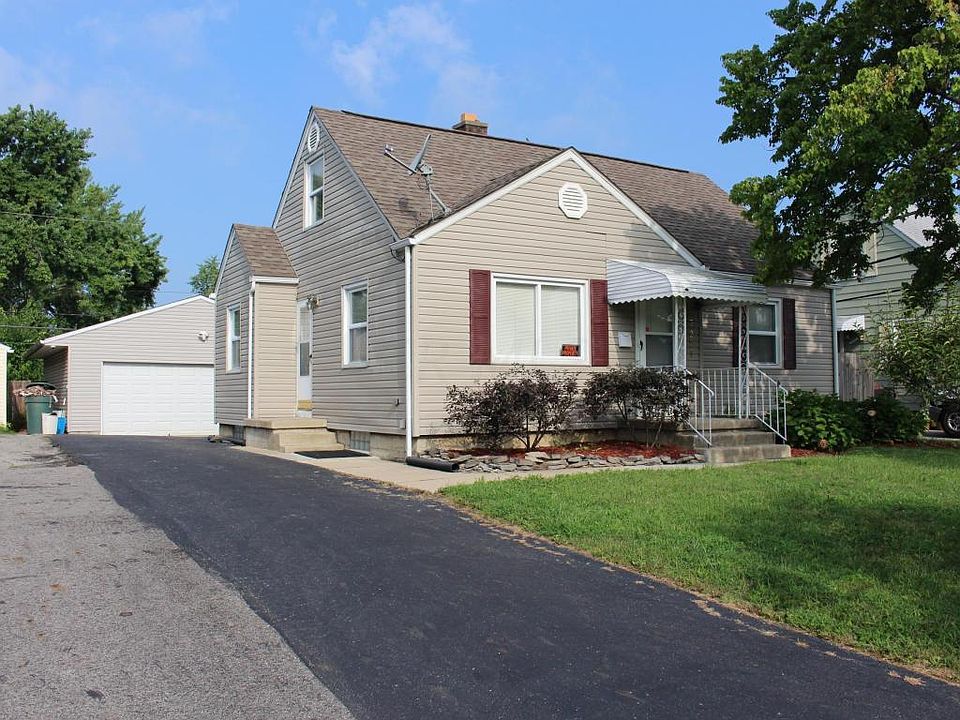LARGER THAN IT APPEARS! This Cape Cod boasts a large upstairs used as the Master w/ TV suspended from ceiling, two bedrooms on the entry level as well as a full bath with an all tile walk in shower, living room, eating space and kitchen. Full lower level has finished ceilings and painted walls/ floors, large detached garage and fenced area for pets! Newer roof, siding windows etc etc!