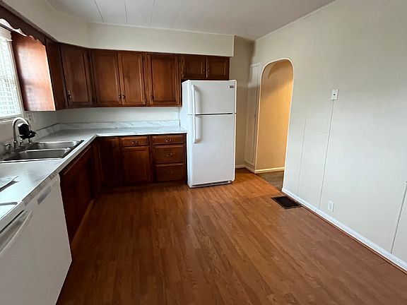 This house has updated flooring and HUGE closets. 2 bedrooms and 1 updated bath. Master bedroom has a full wall of closet space. There is a lot of storage space with built ins, a linen closet in the bathroom, and a coat closet in the entry way. The bathroom has been updated and includes a walk in shower. There is tons of cabinet space in the large kitchen with a dishwasher, microwave, stove, and refrigerator included. There is washer/dryer hookup in the full basement. There is a lot of storage space with built ins.