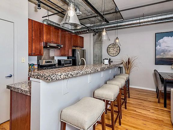 Sleek finishesStainless steel appliancesQuartz countertopsDesigner kitchenTall ceilingsOpen-concept layout