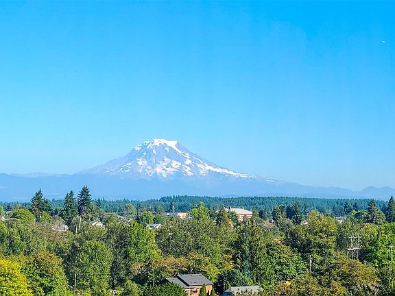 TOP FLOOR! VIEWS GALORE AND PRICED TO SELL. Experience high-end high-rise urban living in this 12th-floor 2BD/1.75BA, 1,273 sq. ft condo at Pacific Towers. Bask in panoramic views of Mt. Rainier, Commencement Bay & downtown Tacoma from oversized windows and a private balcony. The gourmet kitchen features granite counters, stainless appliances, & custom cabinetry with pantry. Primary suite offers dual closets; both baths include tile surrounds. Central A/C, secure building, fitness room & clubhouse with cable TV. Ideally located near freeway, transit, and downtown shops, dining & entertainment. Added bonus: A guest suite is available for visitors! You will swoon over the view from this top floor condo- Be sure to watch the video!