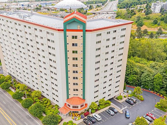 Welcome to urban living at its finest! Located on the 4th floor, this 1 bed, 1 bath condo in Pacific Tower offers a breathtaking view of Mount Rainier and the Puget Sound from the comfort of your own home. Enjoy an open layout with large windows that flood the space with natural light. The building features secure entry, elevator access, a fitness center, a community center, and well-maintained common areas. Just minutes from I-5, public transit, downtown Tacoma, and shopping & dining, this condo is ideal for commuters or anyone looking to enjoy the best of city living.