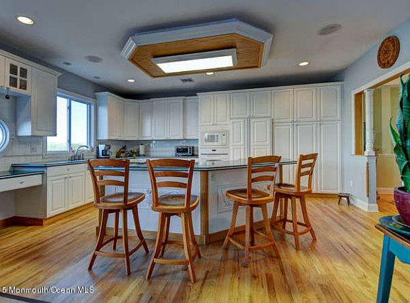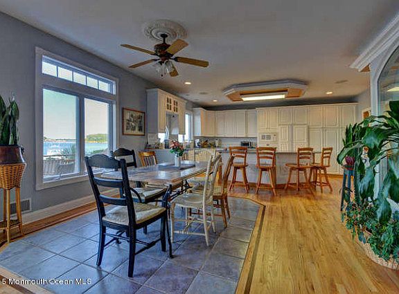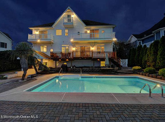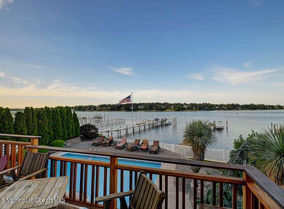 POINT PLEASANT BREATHTAKING views from this custom Manasquan riverfront home where tranquility abounds... A SPORT FISHERMAN'S DREAM!!135FT DOCK W/WATER & ELEC!Just minutes to the Manasquan inlet! Home features 5 bedrooms & 5 bathrooms.Open floor plan with kitchen/great room that has plenty of cabinets,center island w/bar stools for casual dining,family room w/gas fireplace & sliding glass doors to beautiful mahogany deck.This home boasts a formal dining room w/gleaming hardwood floors & crown molding.Bonus room w/full bar for the family that loves to entertain.Fully finished basement w/game room area,workout area,office space,private front entry & sliding doors to professionally landscaped backyard w/heated inground pool & gas hookup for grill. NO SANDY DAMAGE TO HOME.SITS HIGH & DRY.NOT IN A FLOOD ZONE.
