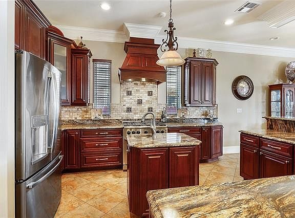 BREATHTAKING BEAUTY! This custom built home features it all. Den opens to kitchen, dining & game room. Den w/high ceiling & gas fireplace. Dream kitchen w/wrap around counters, custom cabinets, granite & gas range. Elegant dining. Game room or additional media room. Detailed crown molding. Primary bedroom is extra large. Bath features sep. shower & jetted tub. Large closets. Climate controlled MAN CAVE garage fits tools, cars, motorcycles & a boat. Beautiful brick patio in back with a private courtyard. Text ASKME to 59559 for more information about this or any other listing.