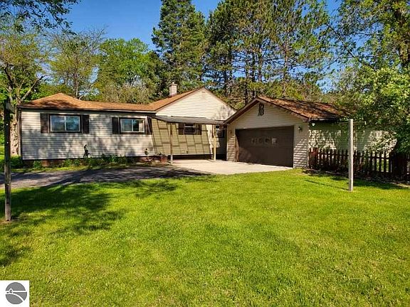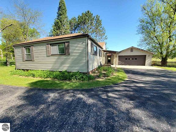 Well maintained 3 bedroom, 1.5 bath home on 4.4 acres with attached 2 car garage along with detached 1 car garage, large formal dining room, large living room, along with some finished space in the basement with fireplace. A huge selling point is there is natural gas and charter tv/internet/wifi which is rare for homes out of town on acreage! Fantastic location!! Only a few minutes to Cadillac's north end! This is an estate sale, sold as is. Note sellers are in the process of moving contents of home and therefore the home does not photograph as cute as the home really is! This is a great home at a great price!
