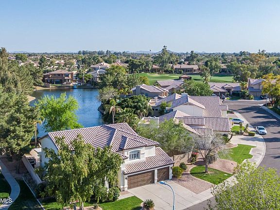 Waterfront Ocotillo Beauty! Newly Remodeled 4BR Retreat with Pool, RV Gate & Scenic Loop Access. Fresh interior paint, new wood plank flooring, and vaulted ceilings create a bright, open, feel throughout. The great room floor plan flows seamlessly for relaxing or entertaining. Step outside to your lush backyard oasis featuring a diving pool, extended covered patio, and a fantastic RV gate with plenty of room for all your toys. The expansive side yard is perfect for kids, a trampoline, or your own outdoor fun zone. Take a leisurely paddleboat ride right from your backyard. Walk out your front door onto the scenic 4-mile Jacaranda Loop, perfect for walks or bike rides and head across the street to restaurants, coffee shops, and top-rated Chandler schools.
