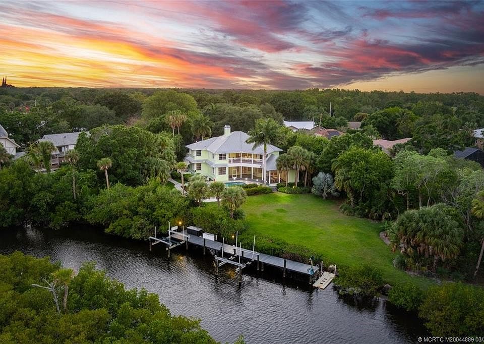 Host friends and family at this WATERFRONT gem, now featuring a NEW METAL ROOF, 2 NEW A/C UNITS, and more! Enjoy breathtaking views from the expansive balcony/porch of this luxurious pool home, tucked away in its own 1.67 acre private oasis, boasting 685ft water frontage! NEW travertine pool deck, walkway, and fire pit area! Located on a cul-de-sac and situated on a tributary stemming from the North Fork of the St. Lucie River, this property also overlooks a tranquil preserve. A completely remodeled dock with lifts on deep water allows for fishing or a boat ride all the way to ocean access! The inside of this 6 bed/4.5bath home is fabulous as well! Large, double-pane windows allow natural light to flow throughout the open space with soaring high ceilings. Huge eat-in kitchen with stainless steel appliances and gas range. Features hardwood floors, as well as NEW carpet and NEW interior paint. A lifestyle to entertain, relax, or venture on the water! Full list of updates available.