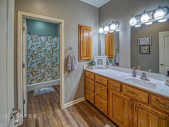 Don't miss out on this property with a Beautiful view and perfect location at the edge of town. This 4 bedroom/3 bath home sits on .74 acre fenced lot in a quiet subdivision. It is a must see with 9ft ceilings, arched doorways and crown molding throughout the house. Large windows provide lots of natural light. The oversized walk-in pantry and spacious laundry/mud room will not disappoint! With a finished walkout basement and safe room; this home provides a generous amount of storage. Call today and take a look! Square feet and rooms sizes are approximates.