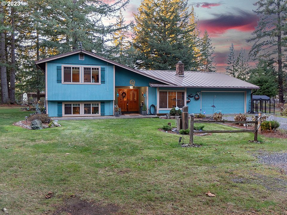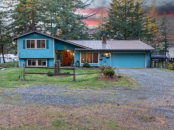 Entertainers delight ? This delightful property features a spacious 2,300 square foot home, thoughtfully designed with the primary bedroom conveniently situated on the main floor. Offering a total of four bedrooms and two baths, it provides abundant space for your family?s comfort. The upper level has three bedrooms, with a conveniently located bathroom. The lower level of the home boasts a generously sized family room, complete with ample shelving, thermostat-controlled pellet stove, and a laundry room. The main level of the home has a kitchen that seamlessly connects to the dining area, and a sunken living room, adorned with a ceiling fan and a cozy wood stove. The adjoining sunroom opens up to a covered porch on one side and an inviting open patio on the other. A door off the porch to bathroom for easy access from outside. Additional amenities on the property include a two-car garage, a substantial barn featuring a hay loft, and a secondary storage area. An RV cover stands ready to shelter your recreational vehicles. Explore the recently refurbished treehouse that creates a tranquil retreat. The landscape is graced with flourishing fruit trees, bountiful blueberries, and grapes. There?s even a second patio thoughtfully designed for gatherings. The property?s tall timbers spread across it?s generous 2.49-acre expanse, contribute to a serene and park-like atmosphere that bacons you to relax and enjoy. Dog kennels located in garage area with inside/outside runs. For added security and convenience, the property is fully enclosed with fencing and features an electric gate.