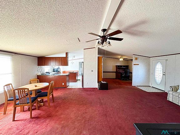 Comfortable doublewide living on the outskirts of town offers ample space and affordability. 3 bedrooms, 2 full bathrooms, open floor plan, vaulted ceilings, pellet stove in the living room, split bedrooms with the primary and secondary bedrooms on opposite sides of the house, and a designated office area. The kitchen is spacious, with plenty of cabinets and countertops and modern appliances. Enjoy relaxation and our beautiful Northern New Mexico weather on the expansive covered deck in the front, or on the cement patio in the back - both are perfect for entertaining! Storage shed included. An affordable entry in the local market! Be sure to schedule your showing today.