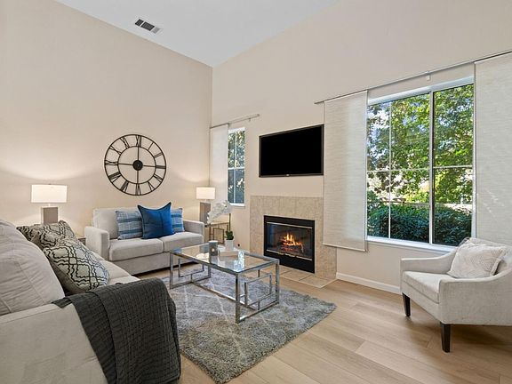 UPDATED CORNER HOME IN PRIVATE COMMUNITY | This tastefully modernized corner townhome delivers stylish convenience, prized centrality, and modern elegance to the exclusive Vineyard Park community. Open, airy interiors filled with natural light boast upgrades like luxury floors, modern fixtures, a glamorous kitchen remodel, and more! Enjoy indoor-outdoor living with multiple gathering rooms, a large secure patio, and no neighbors directly in front. The kitchen showcases quartz countertops, custom Shaker cabinetry, modern full backsplash, and stainless appliances, including a gas range with griddle. Soaring ceilings cover a primary suite fitted with dual vanities and an oversized walk- in closet. Additional highlights include a gas fireplace, surround sound wiring, and an attached, oversized two-car garage. Within one mile of multiple parks, shopping centers, and exceptional schools while also near the library, golf, hiking, commuter routes, and much, much more!