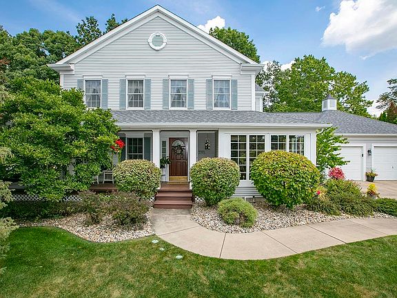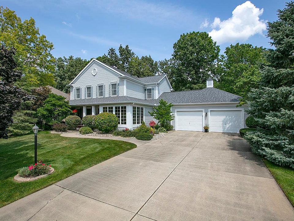 Elegant traditional 2 story home on the Elkhart River. Lovely natural light throughout this 4 bedroom, 2.5 bath home. Foyer w/open stairway. Spacious living room, sitting room/music room, formal dining, family dining and a large chef's pride kitchen featuring an island with breakfast bar, granite countertops, a private desk, huge walk-in pantry and a wet bar area. Main floor laundry with lots of storage and a utility sink. Primary bedroom suite includes a quiet sitting room and updated bath with double sink vanity and walk-in shower. Basement rec room plus family room with egress window, 4th bedroom with egress window and large storage area. Great closet and storage space throughout this home. Inviting outdoor spaces include a spacious patio, a firepit, a newly stained deck overlooking the river and a privacy fenced hot tub that will stay. Sprinkler system. DW, microwave, built-in oven and roof and gutters all new in 2024.