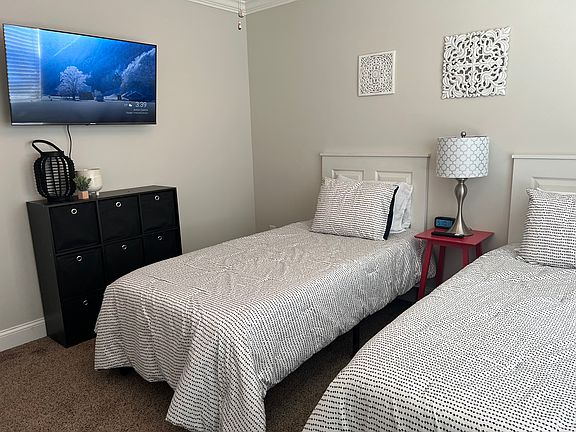 This is fully furnished townhome. All utilities and internet are included. King bed in the main. Queen bed in the 1st guest room and two twin beds in the upstairs 2nd guest room. TVs in each room with Netflix and Disney bundle provided for the townhome. Ring Camera for quest security included.