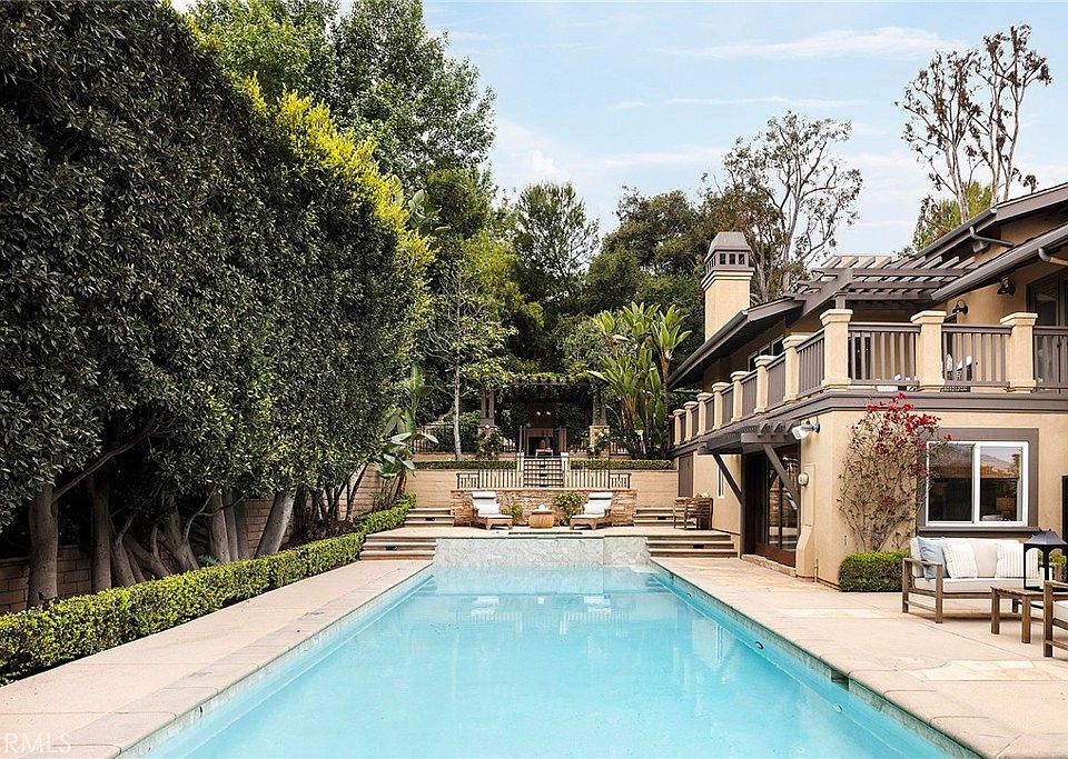 Designed for indoor-outdoor entertaining, the home features a resort-style pool and spa, BBQ, putting green, fire pit, outdoor dining, and an outdoor fireplace—perfect for creating lasting memories. A detached cabana offers a flexible space ideal for guests, workouts, an office, or a poolside retreat, complete with a bathroom and snack area.