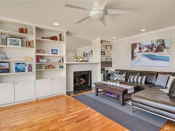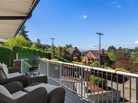 Embrace the opportunity to live on Queen Anne w/westerly views & an easy commute location! Boasting 2 levels of spacious living, hardwood floors, crown molding, A/C & large, picture windows that bathe the main level in warm afternoon light, this solid brick mid-century doesn’t disappoint! Built-in bookcases flank the gas FP in the open living room/dining room. Updated eat-in kitchen & bath + daylight lower level w/separate entrance, BR & bath. Fab view deck+fenced yard w/kennel for pup!