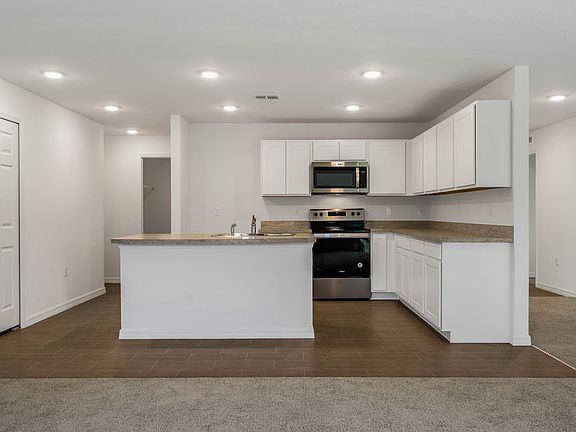 The Majestic plan offers 4 bedrooms, 2 full bathrooms and a generous 2 car garage. The split plan provides the Owners Suite with plenty of privacy from the other three bedrooms. The Owners Suite includes a full bath and walk-in closet. The open concept kitchen and great room makes the perfect space for family gatherings. There is also a welcoming den in the front of the home.