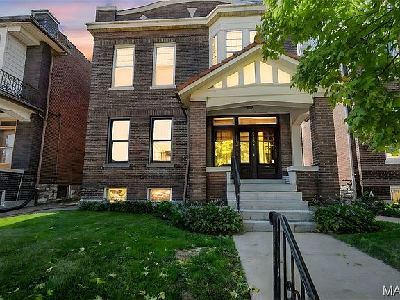 This charming brick duplex in Tower Grove East is perfect for history lovers and lifestyle seekers alike!! Whether you're looking to house hack (live in one unit and rent out the other) or add this beautiful property to your rental portfolio, this home offers incredible value and opportunity. Blending timeless charm with modern comfort, featuring original hardwood floors and trim accents, GORGEOUS pocket doors and soaring ceilings creating a warm and inviting atmosphere in every room. Located in a prime neighborhood, just steps from the South Grand Business District, you'll have easy access to farm-to-table dining, cozy coffee spots, and more. A short walk also leads to Tower Grove Park, the ideal spot for a picnic, jog, or a relaxing day with your furry friends. The upstairs unit offers 3 bedrooms and 1 bathroom, while the main floor unit includes 2 bedrooms and 1 bathroom, along with a fenced-in yard and a 1-car parking pad. Both units share access to a large basement featuring laundry facilities and plenty of storage space. Updates include some newer windows, newer TPO roof, HVAC 2024 and 2021 (with brand new duct work), new LVP flooring (1st floor), & 1 new water heater. This isn't just a home, it's a place to thrive, where every day feels like a celebration of life and every corner tells a story. Let’s make this your next home!