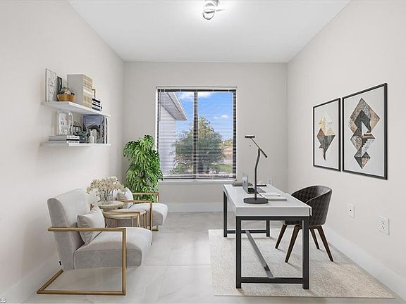Welcome to this stunning new construction home, thoughtfully designed for modern living and flexibility. Featuring 3 bedrooms + den, 2 bathrooms. This home showcases an open-concept layout with high ceilings, spacious living and dining areas, and large windows that fill the space with natural light. The gourmet kitchen features quartz countertops, stainless steel appliances, and custom cabinetry. The Master bedroom offers a spa-like ensuite bathroom with glass shower doors, a double vanity, and two walk-in closets. Additional features include impact-resistant windows and doors, blinds installed on all windows for privacy and comfort, a paver driveway, a washer and dryer, and an outdoor kitchen. Conveniently located, the house is in a quiet neighborhood close to Lee Blvd, Walmart, other shopping centers, and the local hospital. It is also close to Sunshine Blvd with quick access to Ft Myers and I-75. This home offers the perfect combination of style and comfort.