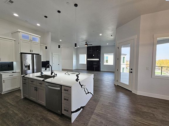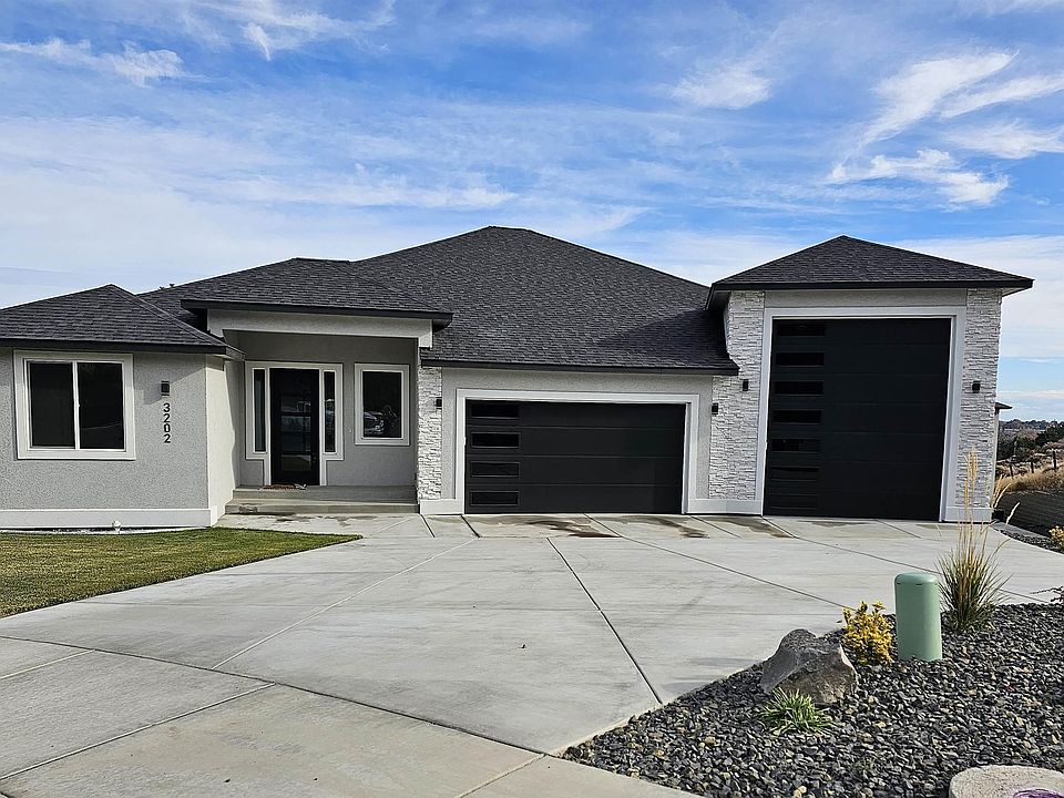 MLS# 287367 FOR RENT: Beautifully appointed newer construction rambler/basement in West Richland with territorial views. Main level features soaring ceilings, kitchen open to the living room with two pantries, floor to ceiling tiled fireplace, oversized balcony, primary bedroom with en-suite bath, plus two additional bedrooms and guest baths. Lower level complete with tile floor to ceiling fireplace, wet bar, remaining bedrooms; one could be a second primary with en-suite for privacy of guests. Finished in home storage room to leave the garage open for vehicles. The massive 1,470 sq ft garage offers an RV bay with 18' ceilings and fits up to 6 cars.