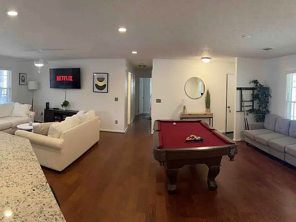 Welcome to our charming and spacious 3 bedroom 2 1/2 bath home situated near both the airport and Ft. Moore military base! This inviting retreat offers comfortable and convenient stay for families, groups and military personnel visiting the area for short/mid term stays. 1 King bed , 2 queen and 1 Twin size beds available. Fully stocked kitchen for all your cooking needs. Pool Table with seating area, living room with TV, free internet to stream your favorite apps.