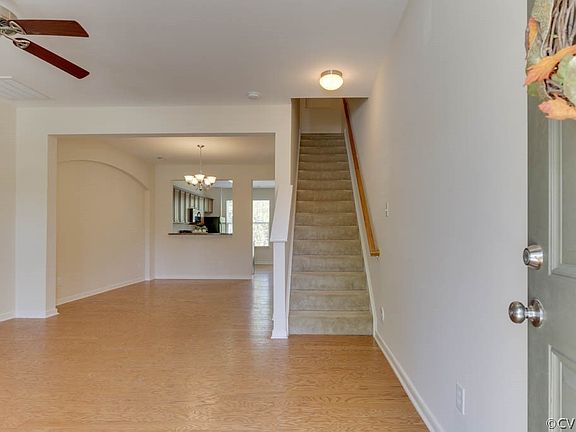 This adorable Taylor model in Weatherly At White Hall has many upgrades! Open floor plan concept with 9 foot ceilings and hardwood floors on the first level. The trim details give the family room and dining area definition of its space. A breakfast bar is positioned just right in the dining area while cooking and entertaining in the kitchen. Added ceiling fan and dimmer lighting in the dining area. Spacious open kitchen with granite, a pantry, extra cabinetry and countertop space! A powder room on the main level too. The Primary bedroom has a tray cove ceiling and great views of the backyard that back up to the woods line. The primary bath has a wall to wall vanity, full tub/shower and leads to a large walk-in closet. There’s an additional bedroom with its own full bath and spacious closet. The laundry room is centrally located in the hallway. Two zoned heating and cooling too. A lovely front porch, back patio and attached storage shed complete the home!