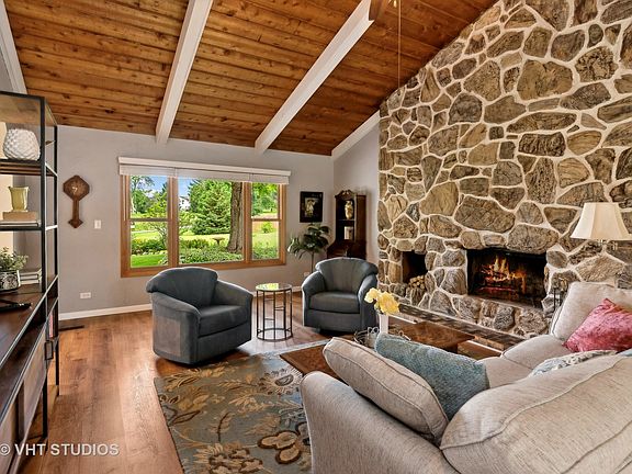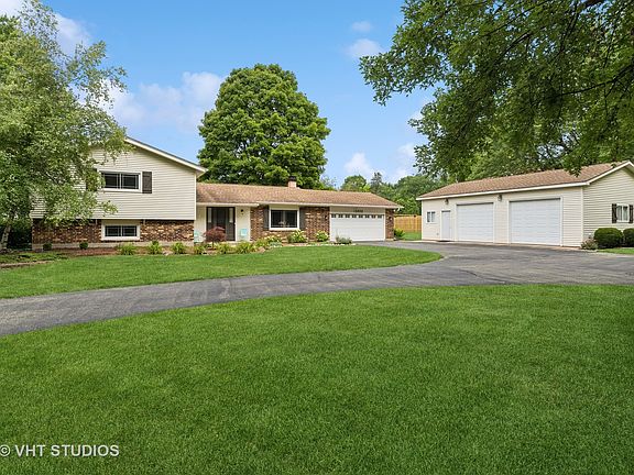 Wow - Wait until you see this 3 + 1 Bedroom / 3 full bathroom split-level home! It offers you tons of space! All bedrooms are above average sizes. Unique to many split-level models - this home has two full bathrooms on the second level with an ensuite Primary Bathroom. The balcony deck off the Primary Bedroom and the main floor brick paver patio both overlook an expansive backyard and the adjacent golf course. There is a fourth Bedroom on the lower level PLUS a full bathroom on the lower level as well. If you don't need a fourth bedroom it would make a large office, exercise space, playroom or craft room! This well cared for home is located on a prime 1.2 acre lot backing to Midlane Golf Course in Wadsworth. There is a lovely, manicured yard with lots of space and privacy. But WAIT - there are 4-1/2 cars worth of garage - 23' x 21'! Ample room to park multiple vehicles with space for additional storage, your lawn mower, a work bench or whatever your needs may be. The step-down Great Room/Living Room has a vaulted ceiling with beams, and it is centered around a cozy wood burning stone fireplace. There is also a very large lower-level Recreation Room with a dry bar that has some local history, and a sliding door to a secondary patio. One of the unique advantages of this property is the absence of HOA restrictions, allowing you the freedom to personalize and enhance your home to your heart's content. Conveniently located between Kenosha/Pleasant Prairie and Gurnee providing many choices for shopping, dining, and entertainment. There are several dog parks nearby, access to beaches along the Lake Michigan shoreline, and the DesPlaines River trail access is just down the road. Served by Gurnee School District 56 and Warren Township High School. Don't miss the opportunity to own this extraordinary property!