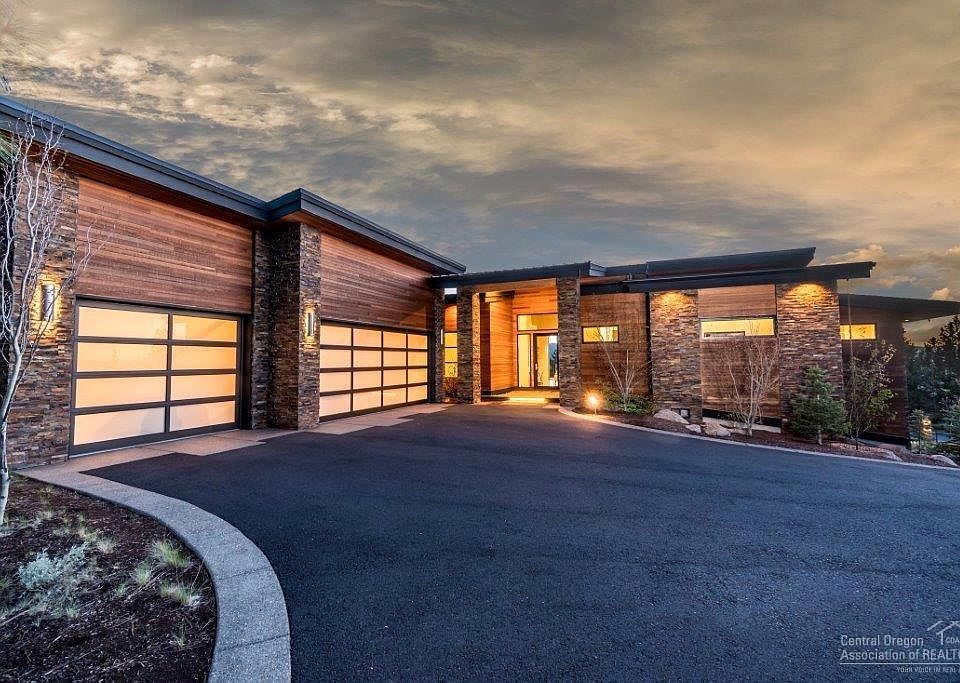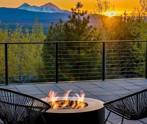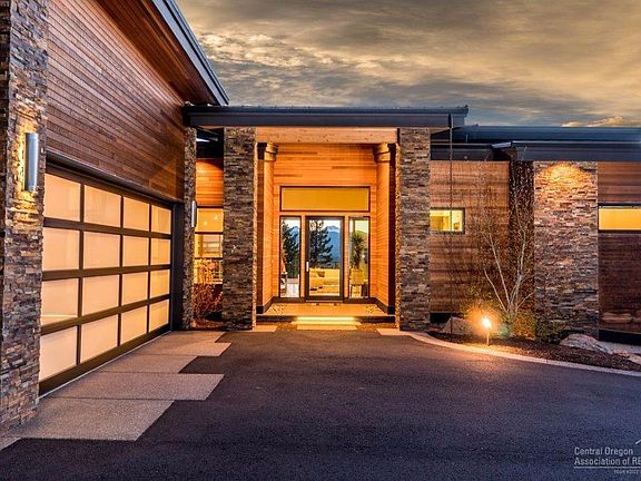 Stunning Awbrey Butte contemporary home w/CASCADE VIEWS. Great room w/modern FP, sliding glass wall opens to deck w/gas fire pit. Kitchen w/Caesarstone, custom cabinets, Wolf oven, Dacor 6 burner stove, dual sinks & raised eating bar. Dining area w/wine bar. Master suite on main, FP, jetted tub & steam shower. Downstairs w/2nd master, office w/built-ins, media room w/wet bar, fitness room. Energy efficient w/radiant heat, AC, filtered water system. Covered patio and Xeriscape landscaping. 3 car garage.