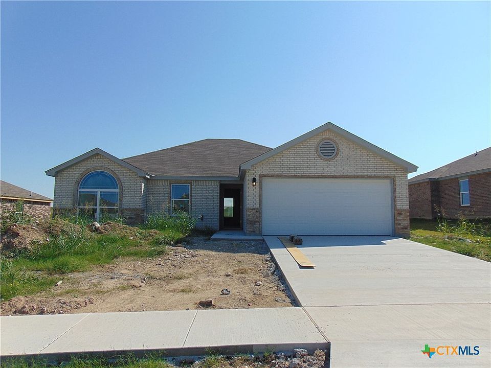 Another exciting plan from Victory Homes. Spacious floor plan, 3 bedrooms, 2 full baths, small study off of the master bedroom useful as a home office, baby room, you name it. 9ft ceilings in living area and master bedroom, ceiling fans in living and master bedroom, vinyl tilt-in windows, separate tub and shower in master bath, dual vanities, custom cabinetry, full sod and sprinkler system and much more. Shopping, groceries, churches, etc. are within a mile of the home. Fort Cavazos Clear Creek gate is 6 miles away. Easy access to all you need. You have to see all this home has to offer. Room sizes approximate and should be verified by buyer and/or buyer's agent if important. Call anytime for your private showing. Floor plans and features subject to change at builder's discretion.