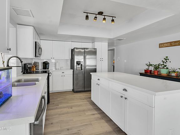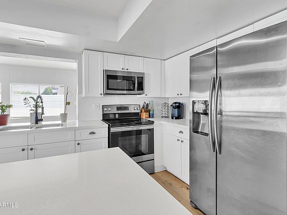 Don't miss out on this stunningly remodeled single-story home in Phoenix on a corner lot! With a fantastic floor plan and all the modern features you could ask for, this home is sure to impress. You'll love the new wide plank wood tile floors and plush new carpets throughout the house. The designer kitchen is a dream, with new soft-close cabinets, gorgeous quartz countertops, subway tile backsplash, and shiny new stainless steel appliances. The interior has been freshly painted, giving it a crisp and inviting feel. Both bathrooms have been thoughtfully remodeled with new vanities, light fixtures, and beautiful quartz countertops. ou won't find a better home in Phoenix, so don't wait! Schedule your visit today and see your dream home before someone else snatches it up!